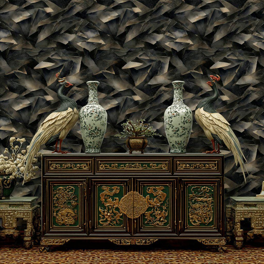 Abstract Broken Glass Wallpaper: Dark Gray Geometric Shard Mural