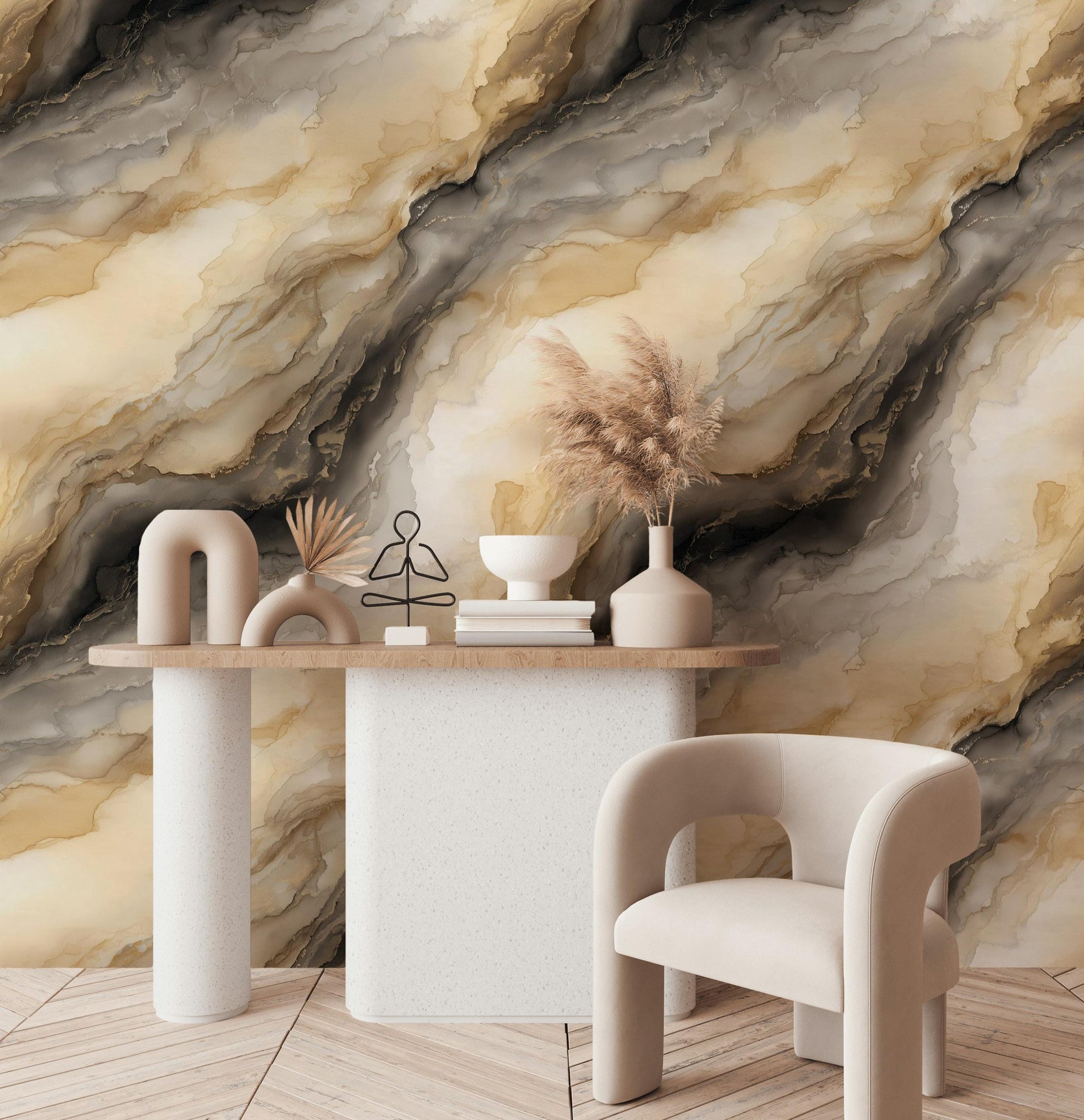 Abstract Gold Marble Wallpaper | Neutral Fluid Art Wall Mural | Modern Peel and Stick Decor