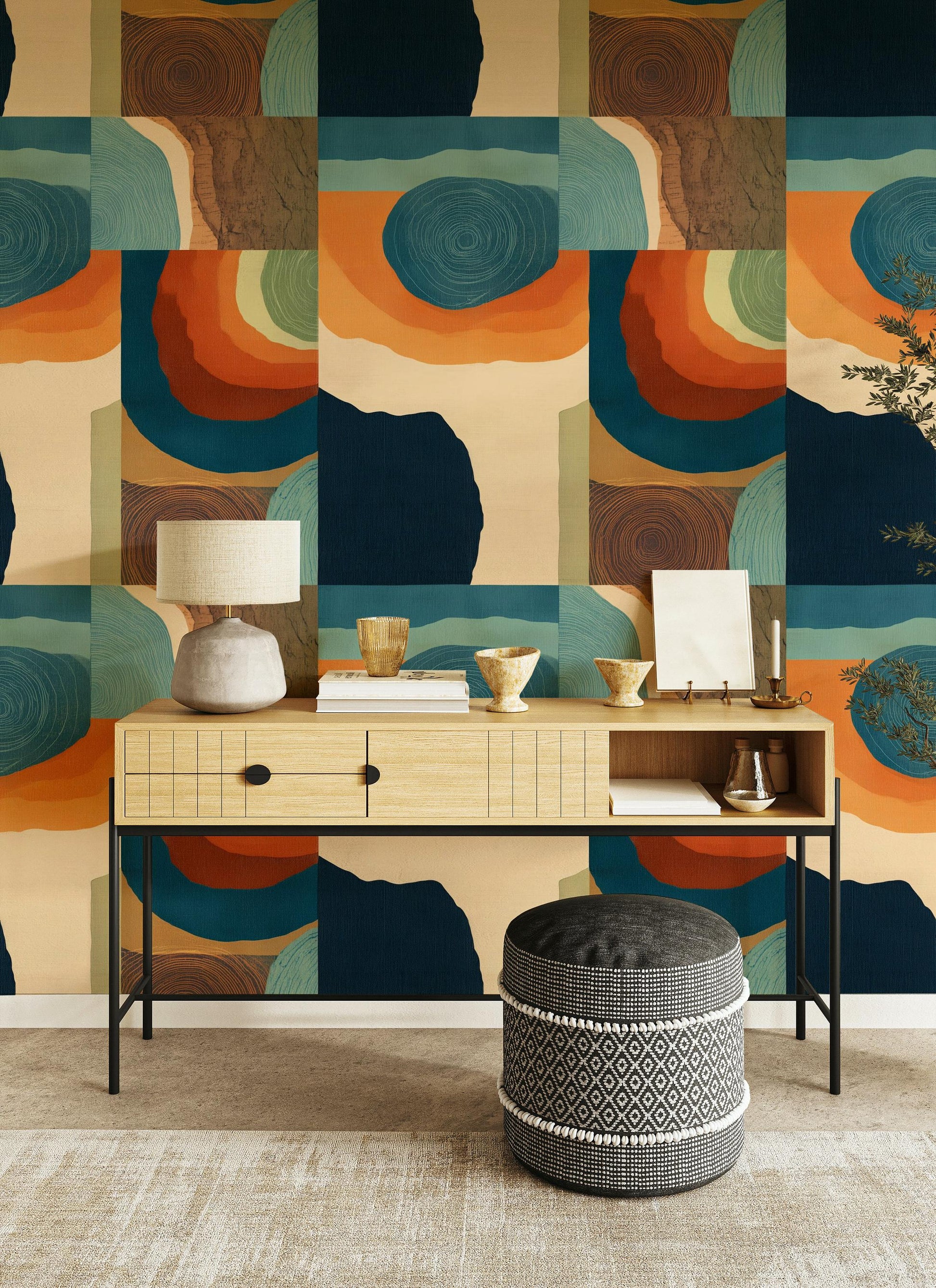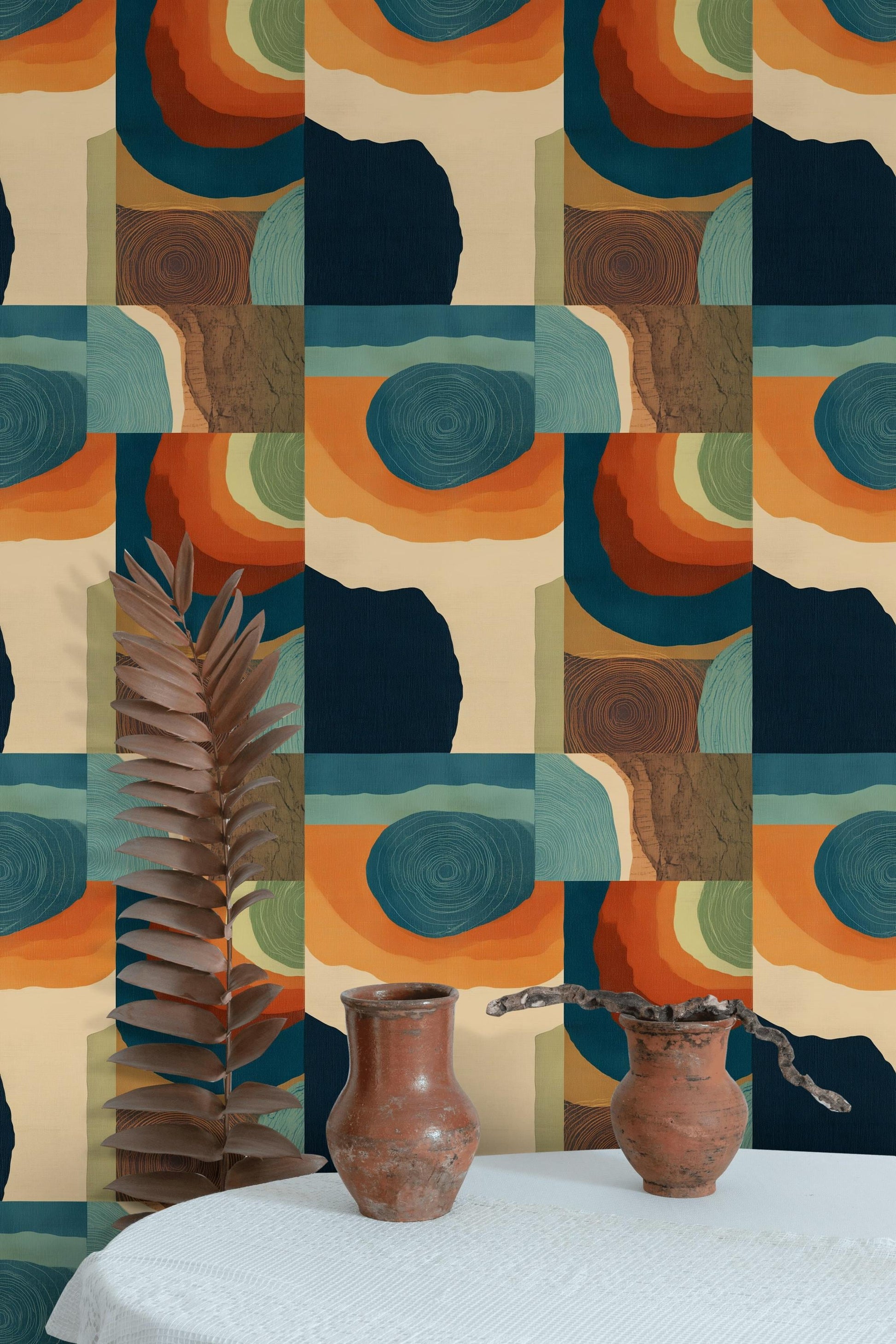Abstract Nature Blocks Wallpaper: Earth Tones Peel and Stick Wall Mural