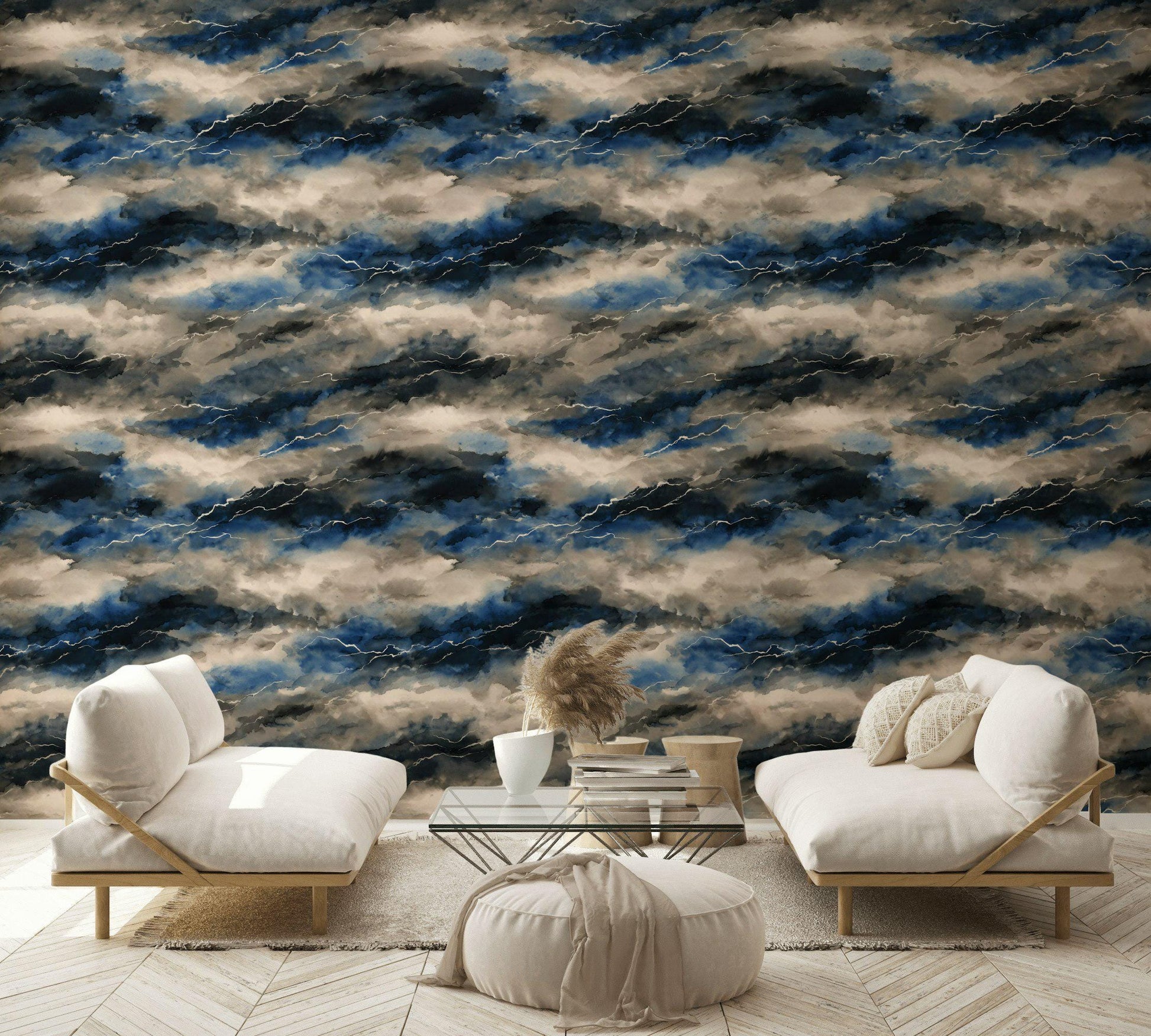 Abstract Stormy Sky Wallpaper: Modern Blue Gray Peel and Stick Wall Mural