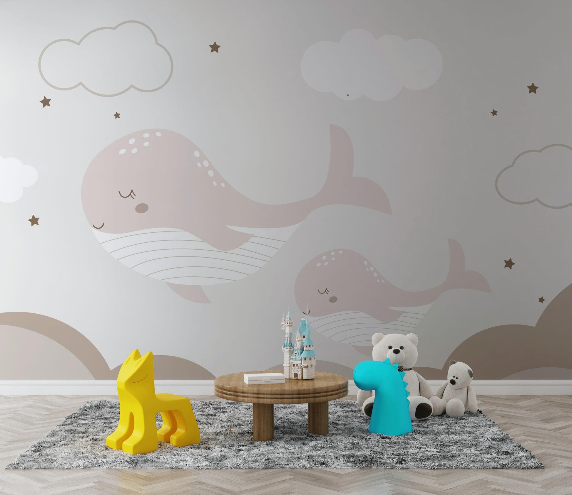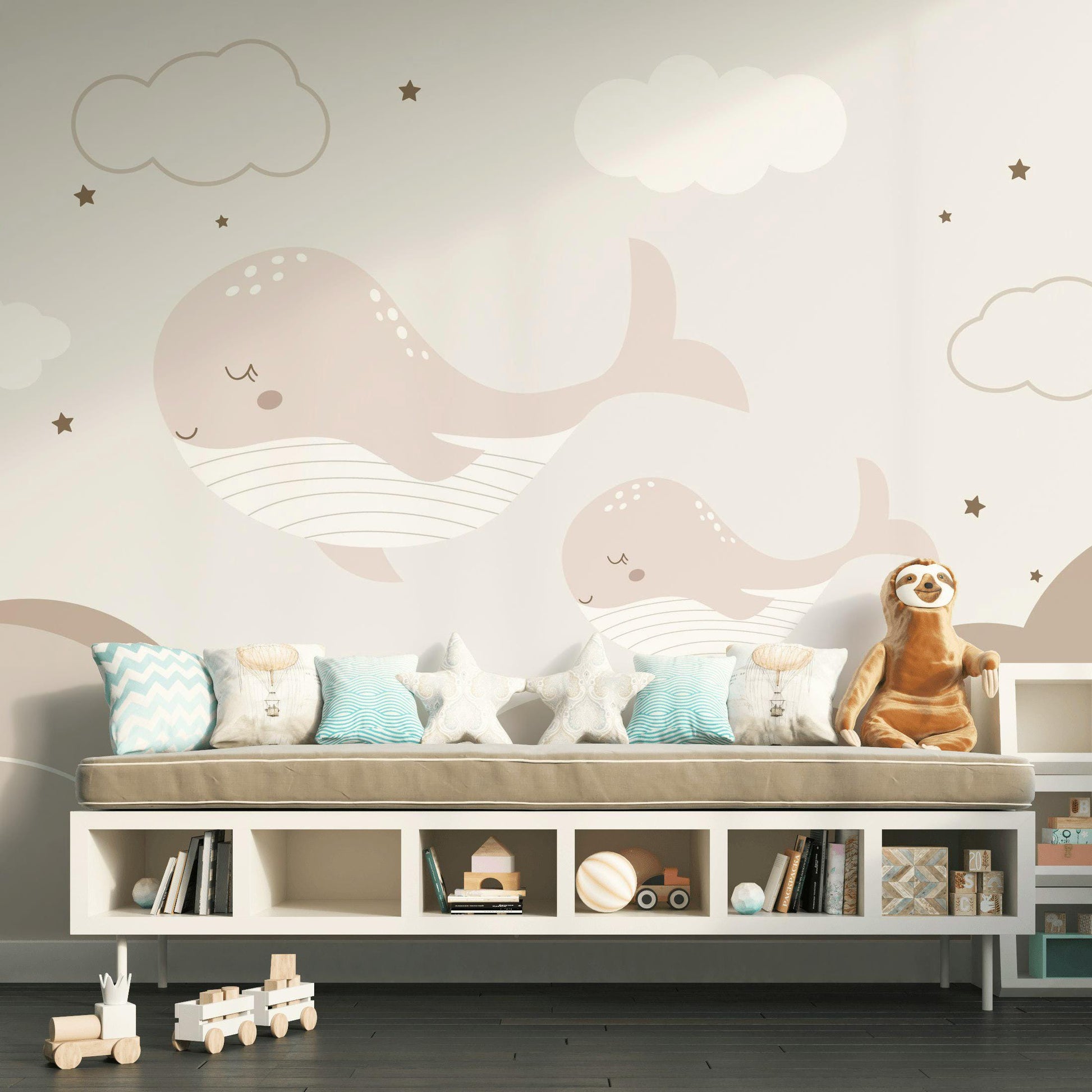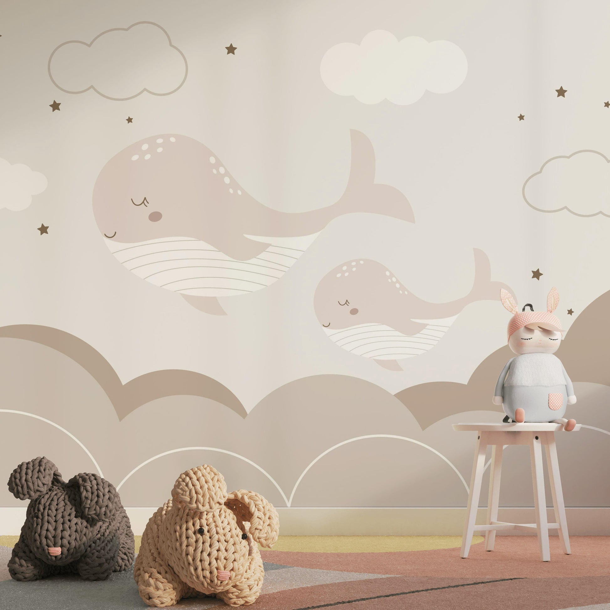 Boho Whale Nursery Wallpaper, Neutral Ocean Wall Mural, Minimalist Peel and Stick Baby Decor