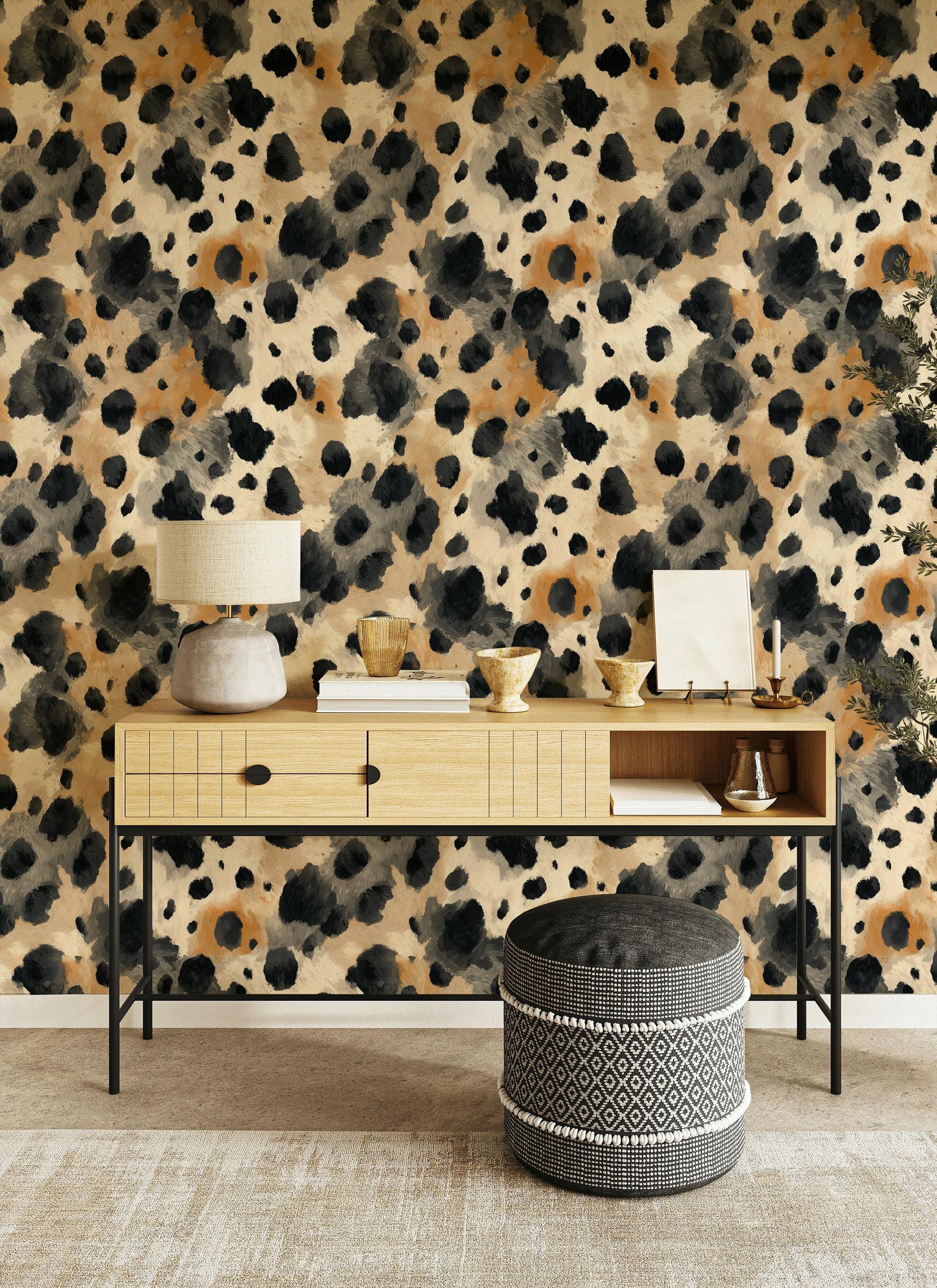 Cowhide Print Wallpaper: Black, Beige, and Tan - Peel & Stick