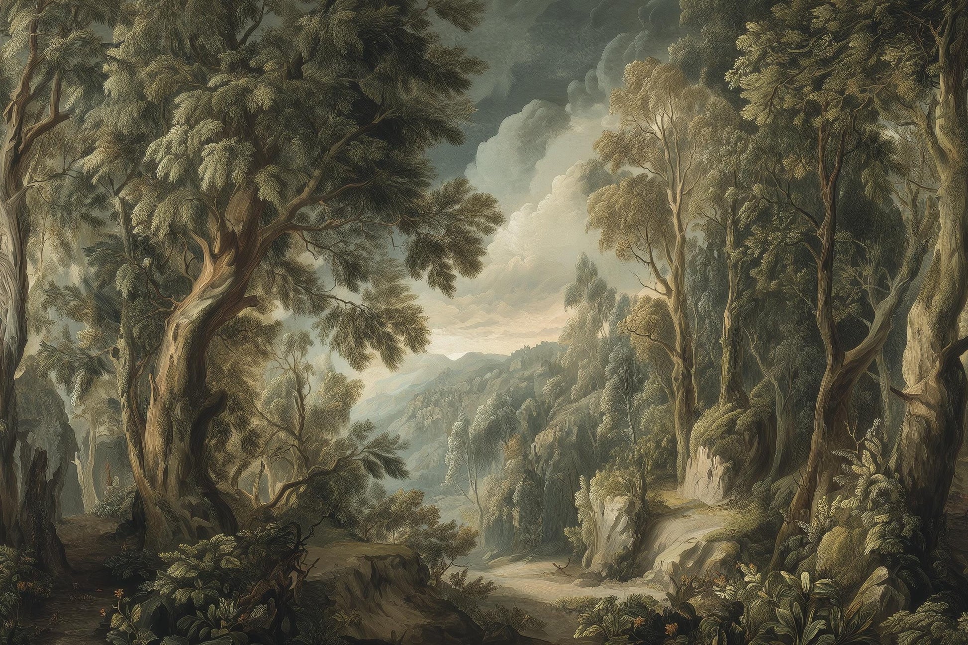 Forest Landscape Wallpaper Trees Vintage Wall Mural