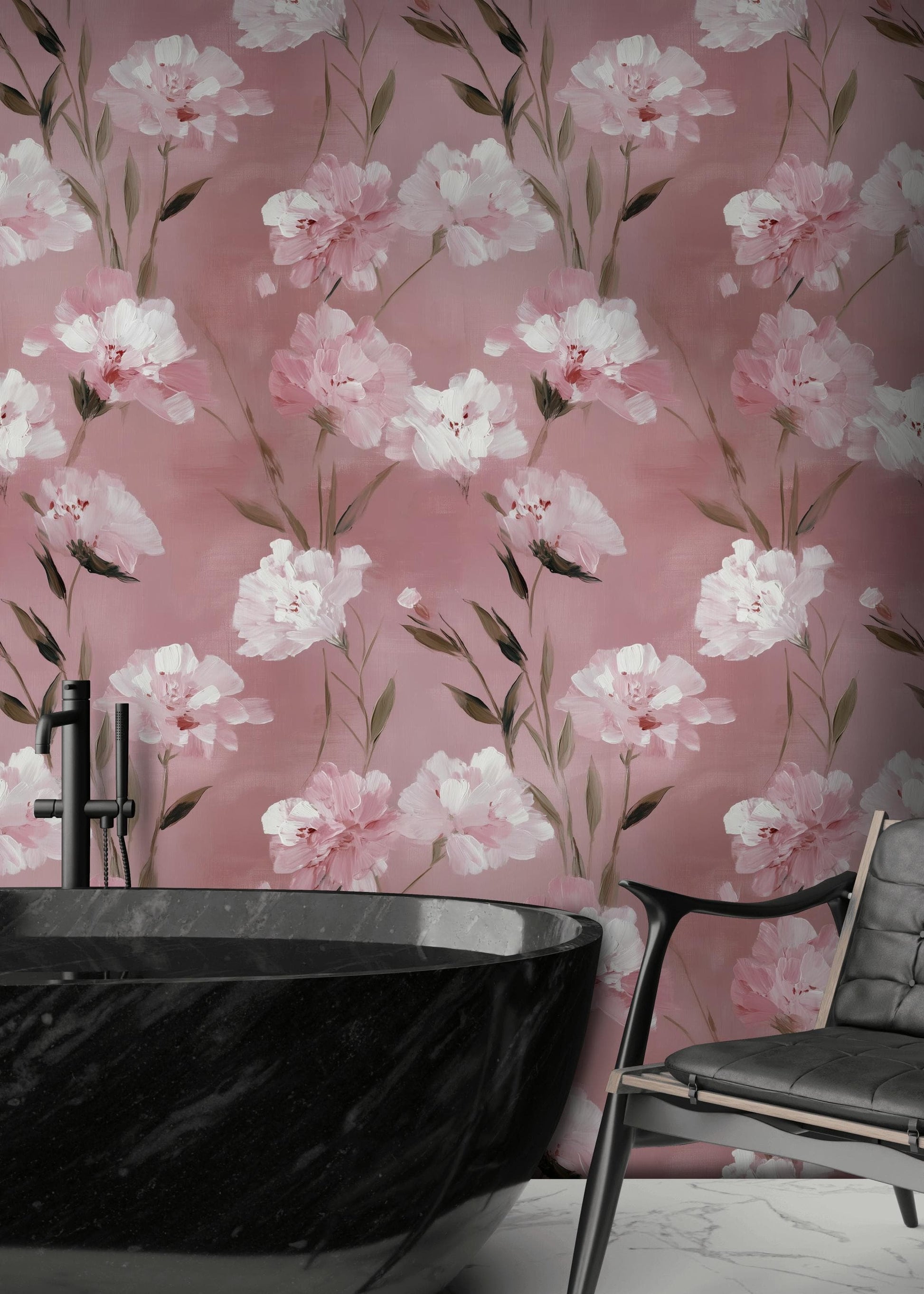 This versatile blush pink floral wallpaper is perfect for creating a dreamy feature wall in your bedroom, nursery, living room, or even a chic home office. Its gentle hues and artistic floral motif seamlessly blend with romantic, shabby chic, cottagecore, modern farmhouse, and feminine interior styles, offering a charming and calming statement that truly elevates your space.