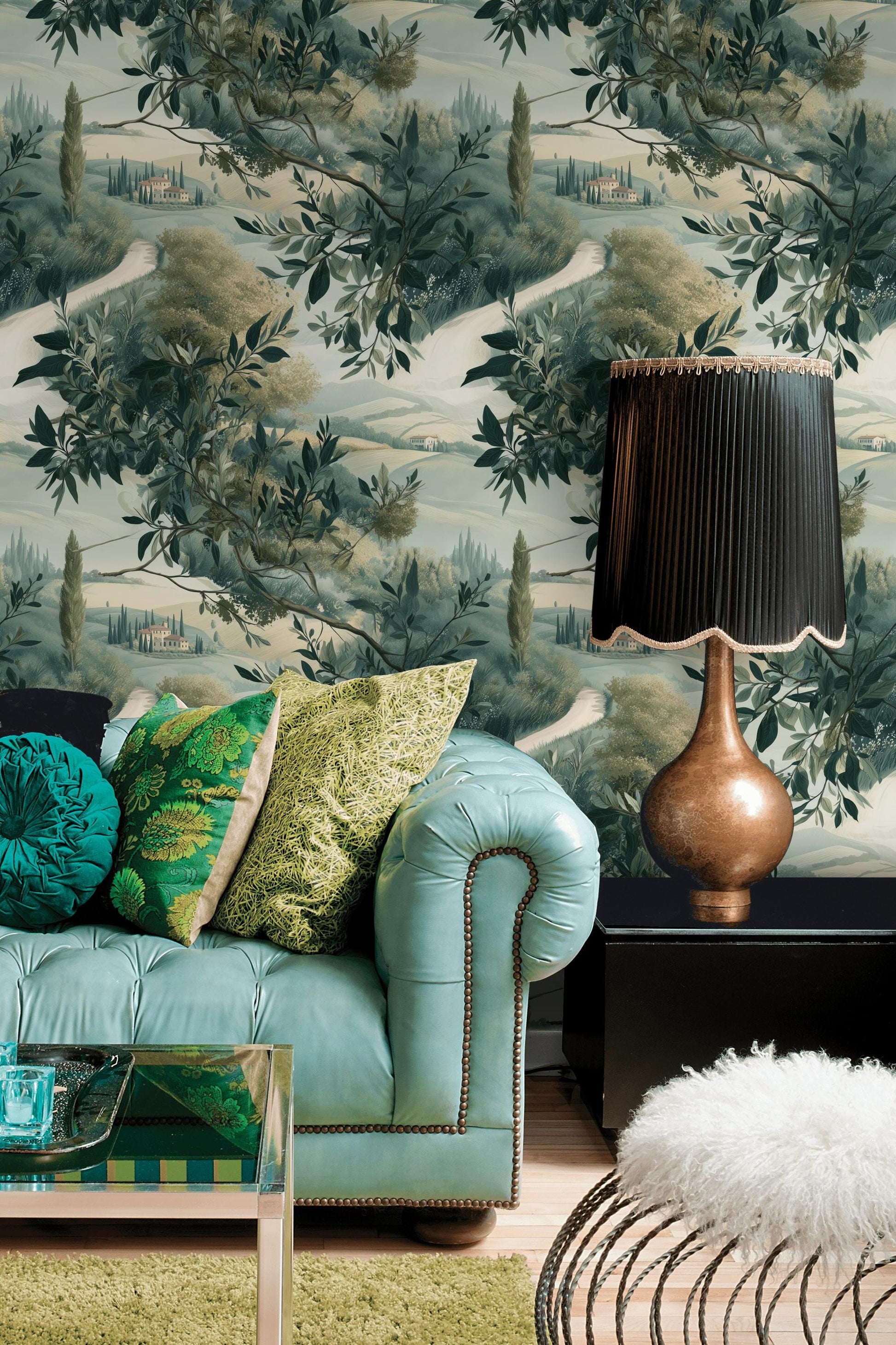 Tuscan Landscape Wallpaper | Olive Tree Wall Mural | Italian Countryside Peel and Stick Decor