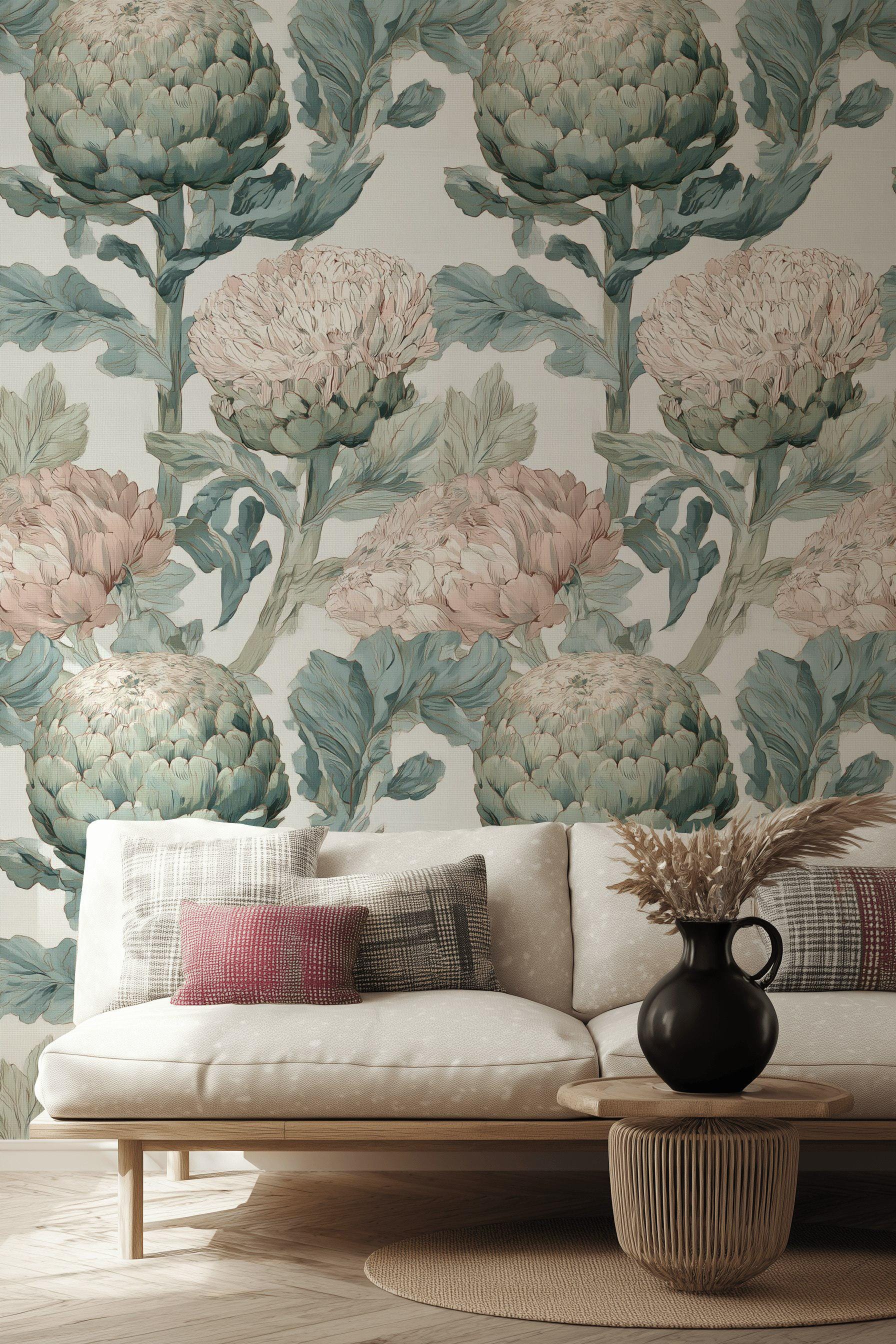 Vintage Botanical Peel and Stick Wallpaper: Artichoke Floral Mural