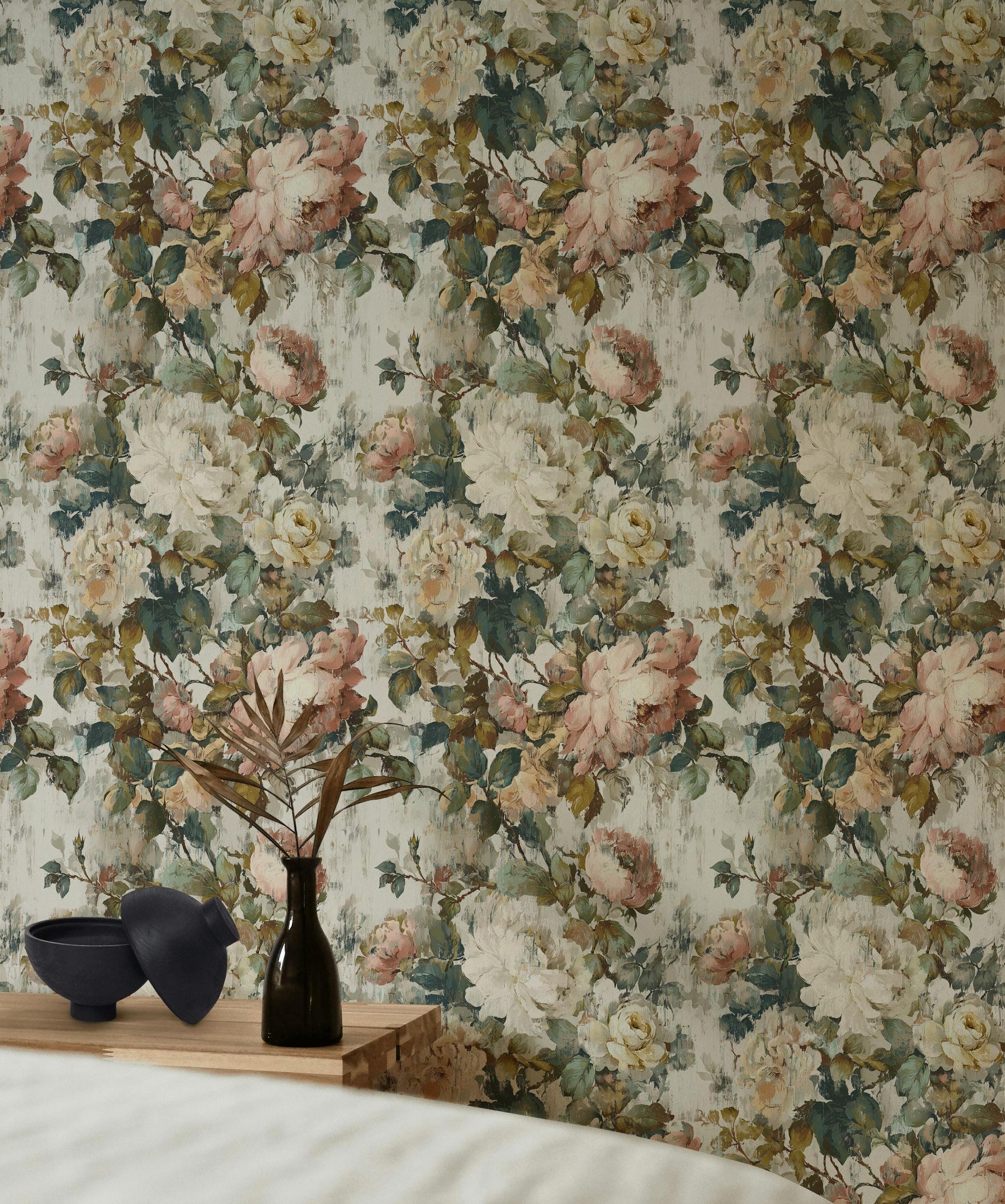Vintage Floral Rose Wallpaper: Shabby Chic Peel and Stick Wall Mural